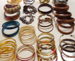 夏に活躍しますバングルやブレスレット。 腕を出すことが多くなり(昼間は外では長袖ですが・・・)、洋服に合わせてつけます。 エスニックなワンピに合わせてジャラジャラと、またそのつけた時の音の響きも好き。 いつ・・・