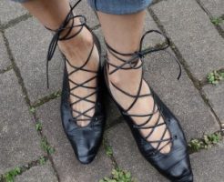 秋冬から流行っています靴・・・ 足首にクルクルと紐を巻きつけて、リボン結びにするレースアップシューズ。 先日のぞいたお店で、目の前で見ていて、30年前の記憶が蘇ってきました。 「そういえば・・・たしか・・・」 早速、帰っ・・・
