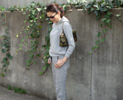 近くへちょっとお買いものへ行く時のファッション。 パーカーとスエットスタイル。 ちなみに、この日は全身「しまむら」コーデ。 Championのパーカーはワゴンで見つけ、しかもお値段、ナント!300円。 サイズが150と子・・・